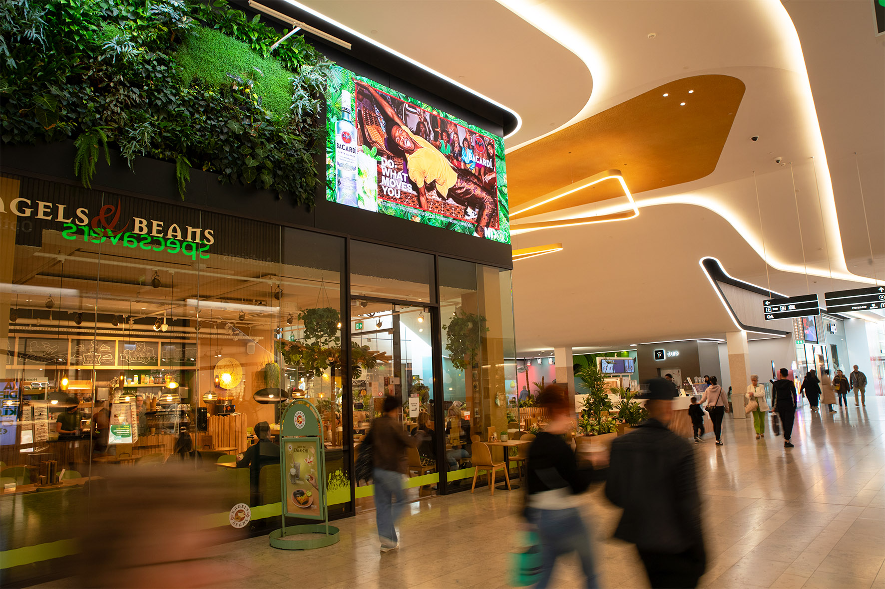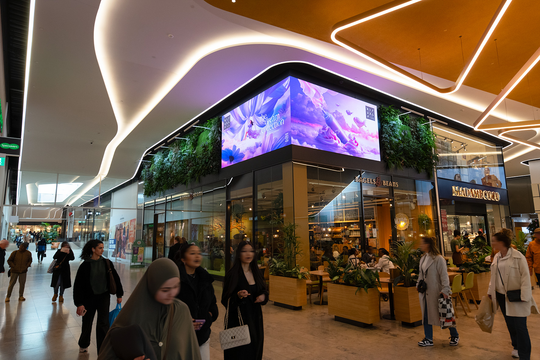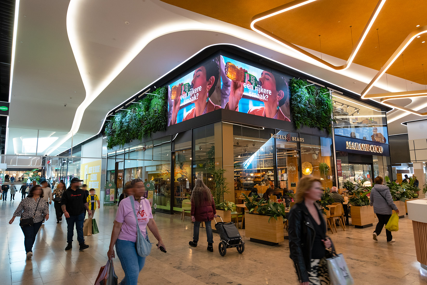 The Green® Alexandrium is hét groene hoekscherm met impact, gelegen bij de hoofdingang van Alexandrium Shopping Center in Rotterdam. Omgeven door een verticale tuin springt dit LED-scherm van 18 m² direct in het oog. Het biedt merken de mogelijkheid hun campagne spectaculair te maken met 3D-content en dynamische visuals op beide schermzijden. Hier bereikt een merk fashionliefhebbers, families, jonge stellen en stedelijke trendsetters die kiezen voor beleving én gemak. Bovendien is er ruimte voor merkactivatie direct voor het scherm. Op die manier wordt de zichtbaarheid van de DOOH-campagne maximaal benut.
