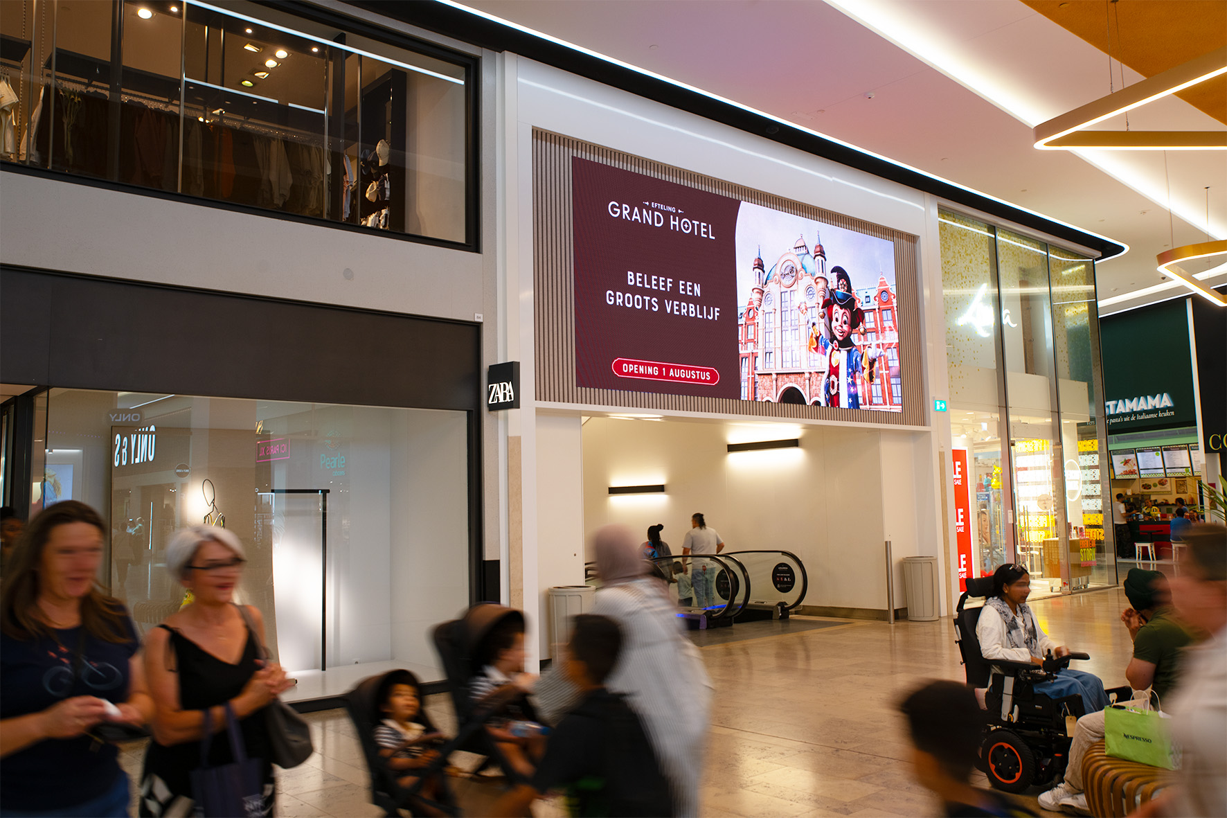 The Square is de head-on digital out of home locatie van Alexandrium Shopping Center in Rotterdam. Dankzij een dwell time van maar liefst 15 seconden is dit scherm niet te missen en ideaal voor creatieve campagnes die de aandacht vasthouden. Gelegen bij één van de drie hoofdentrees heeft The Square aanwezigheid op een prominente locatie. Bovendien is er ruimte voor een merkactivatie direct voor het scherm, waarmee merken extra beleving kunnen creëren. Alexandrium is één van de grootste winkelcentra van Nederland, met meer dan 130 winkels, inclusief fashionketens en een Food District. Het trekt shoppers, families en stedelijke bezoekers. Met een gemiddeld dagelijks bereik van 12.000 voorbijgangers zorgt The Square voor maximale zichtbaarheid op het beslissende koopmoment.