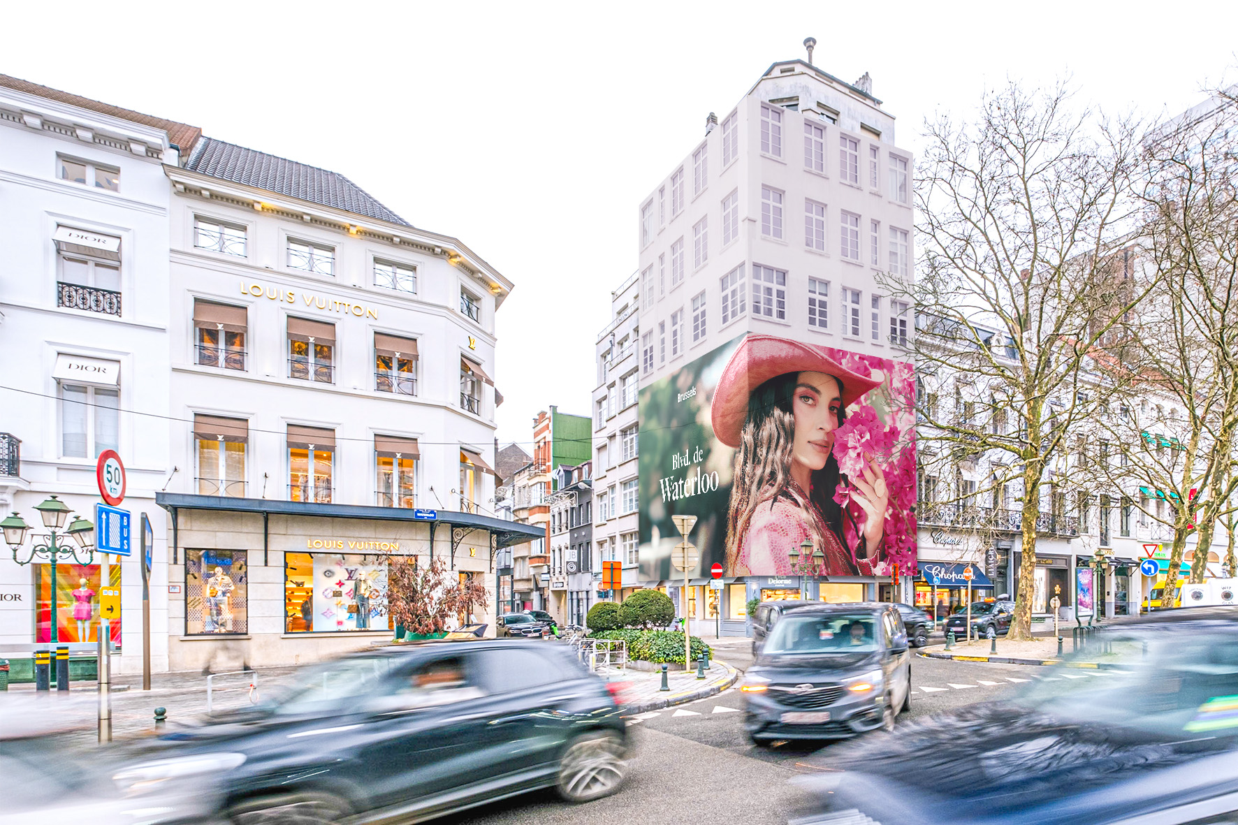 This prime location is situated on one of Brussels’ most prestigious avenues. Benefiting from continuous high traffic and visibility, this Giant Poster ensures maximum exposure. Strategically positioned near the intersection with Avenue Louise, it stands close to renowned international brands such as Louis Vuitton, Tiffany & Co., and Hugo Boss. A short distance away, the vibrant shopping district of Avenue de la Toison d’Or features luxury boutiques and premium retail destinations like Apple, Prada, and Zara Home, making this an unmissable advertising hotspot.