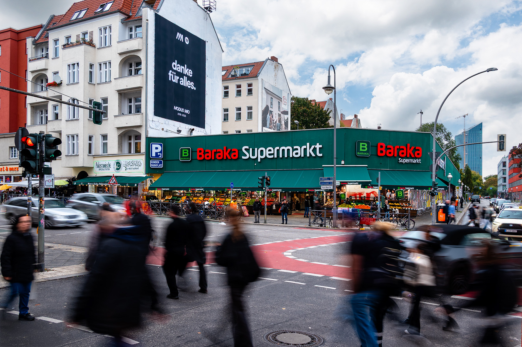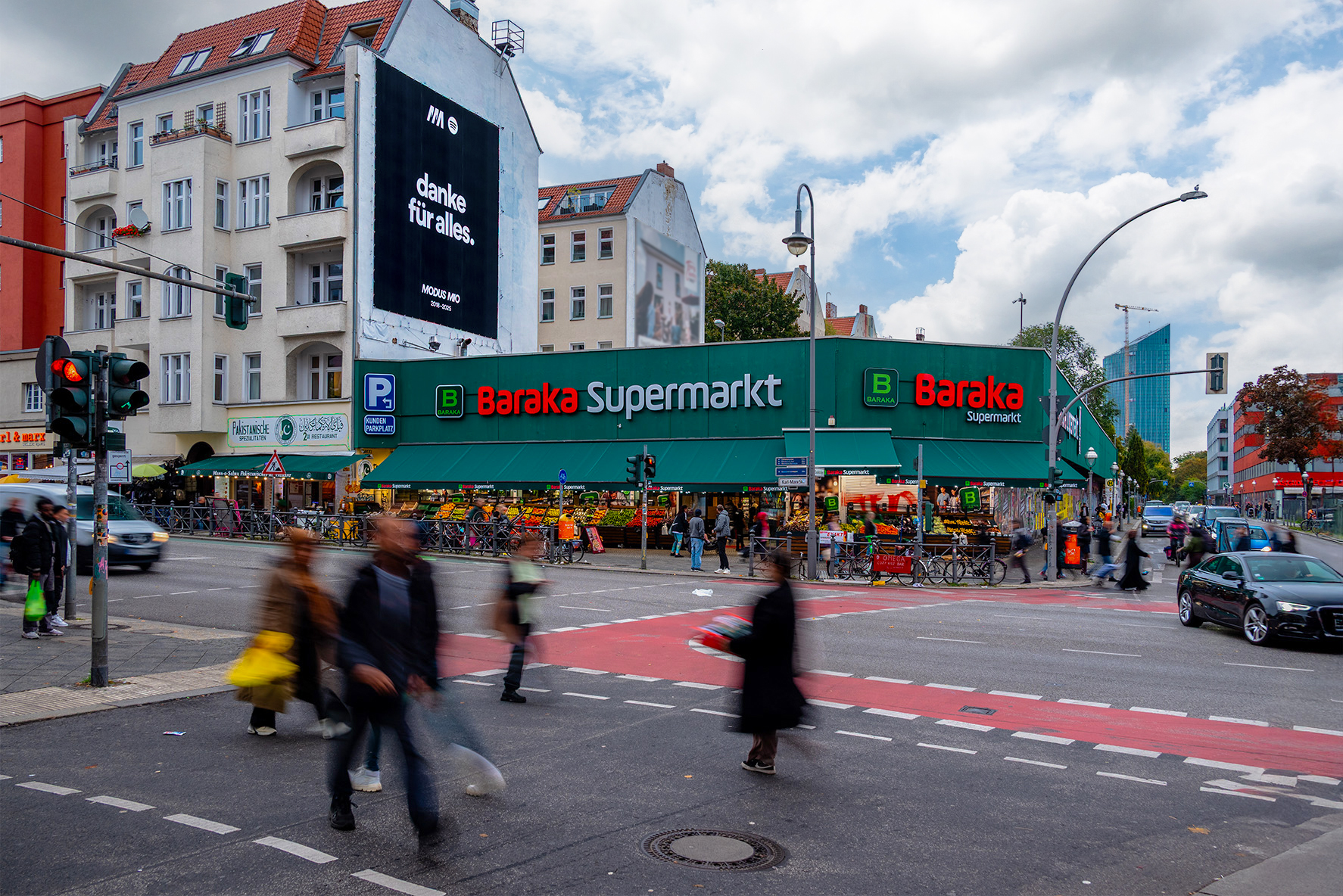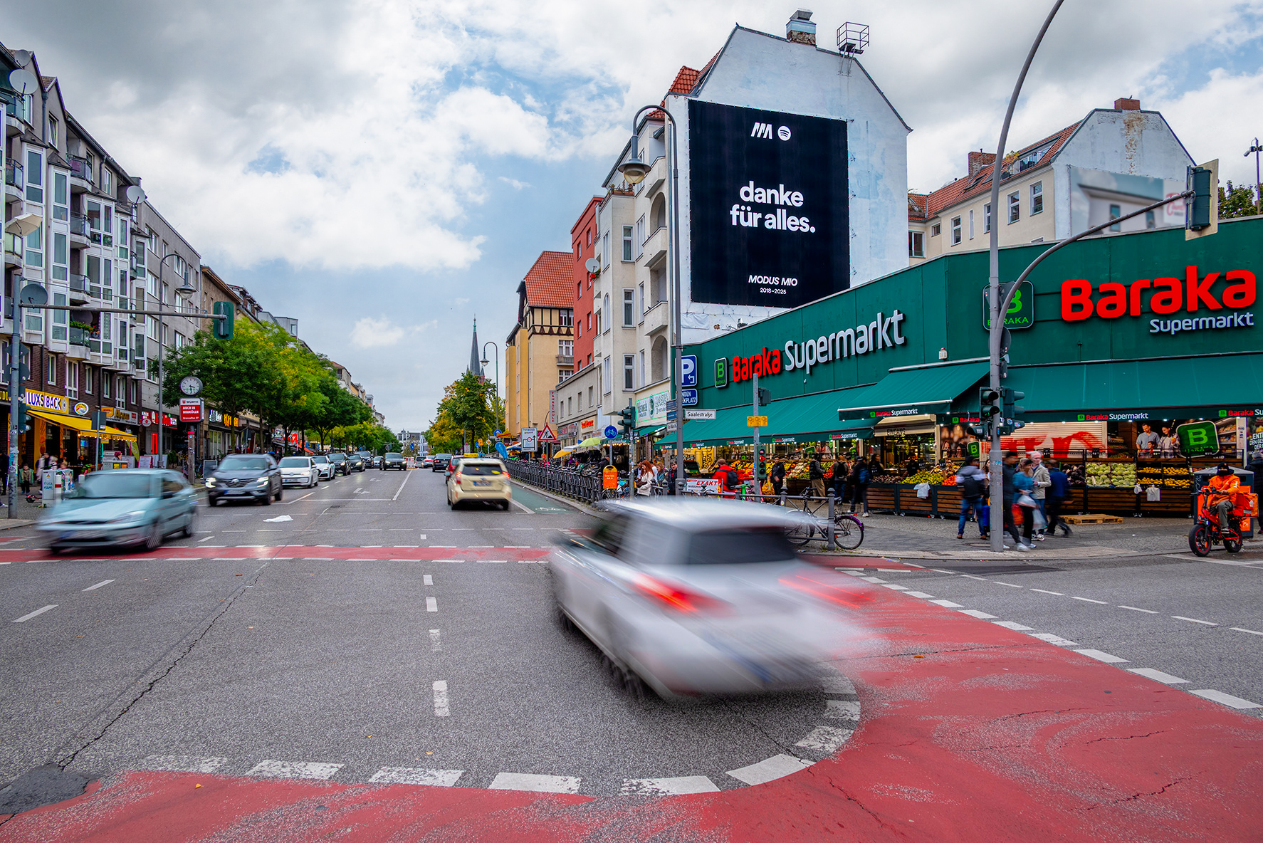 At the heart of fashionable Neukölln! This BlowUP is located on Karl-Marx-Straße, a highly frequented three-lane main road, and one of the city’s most important traffic junctures. It is a major route in and out of the city, directly connecting the city centre with the whole of southern Berlin, the region beyond and the A100 urban motorway. In recent years Neukölln has become a cultural hub. A lively club scene has sprung up around Reuterkiez, and small galleries and bars attract visitors to the capital, backpackers and students, who want to soak up Neukölln’s relaxed, shabby chic atmosphere, which is typical of Berlin. The area’s parks and green spaces also offer a pleasant break from urban life. Nearby Neukölln Arcaden, a broad range of restaurants and Berlin-Neukölln station all ensure additional traffic around the clock.
