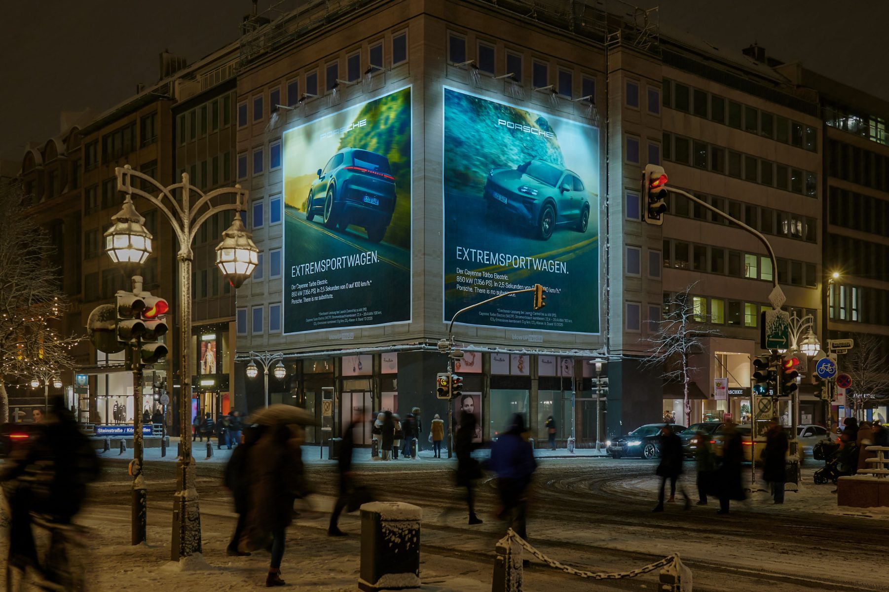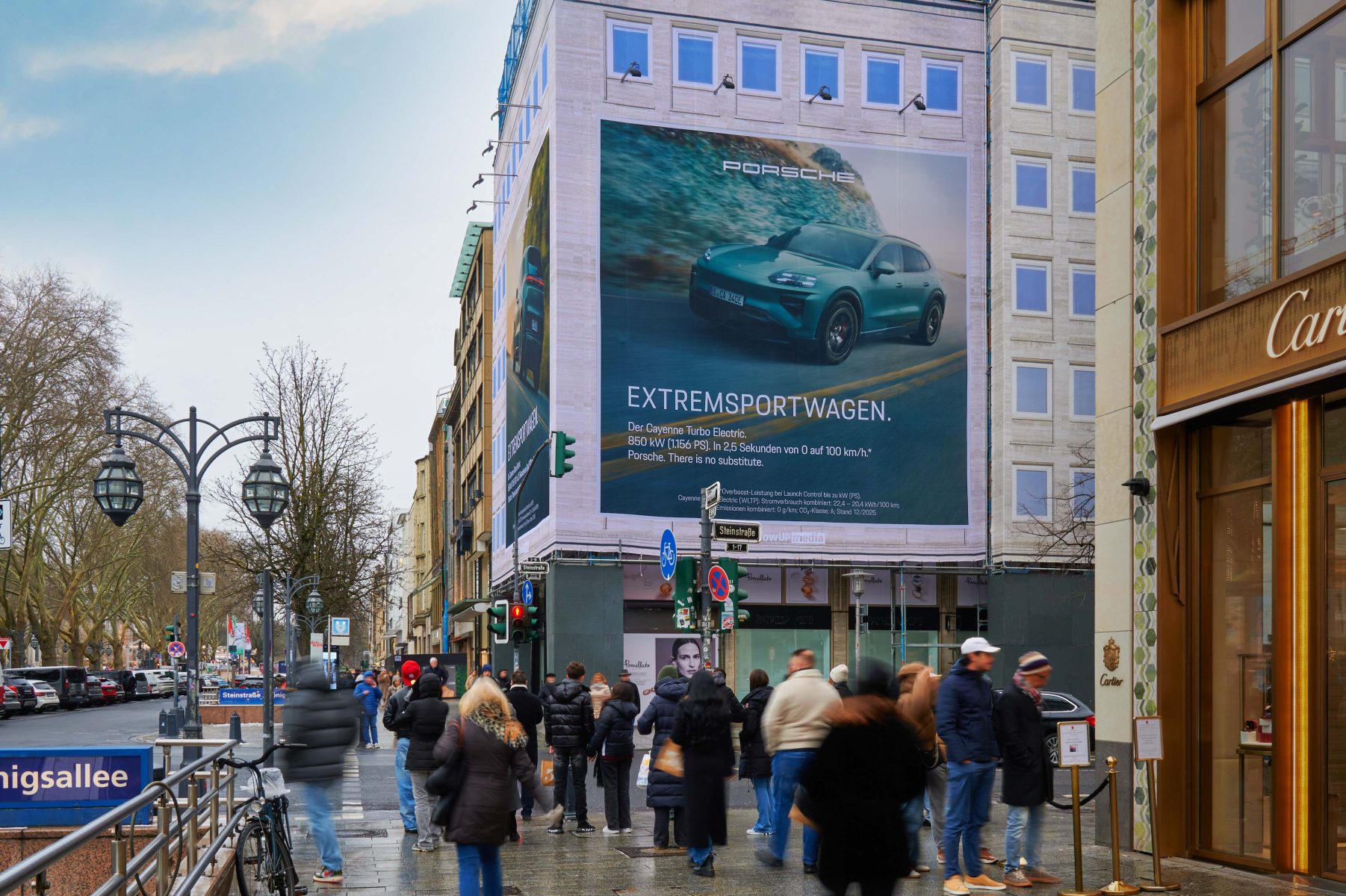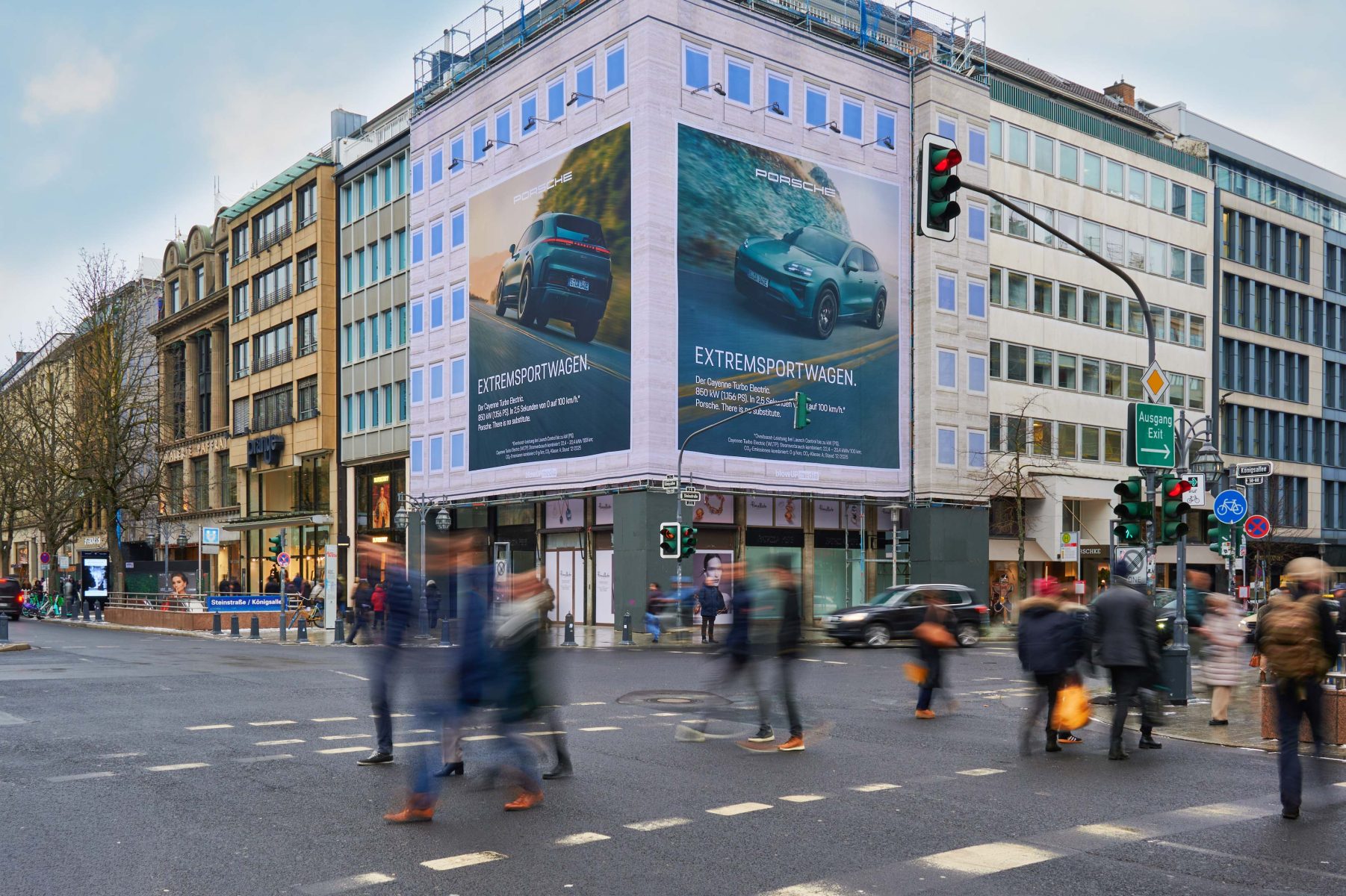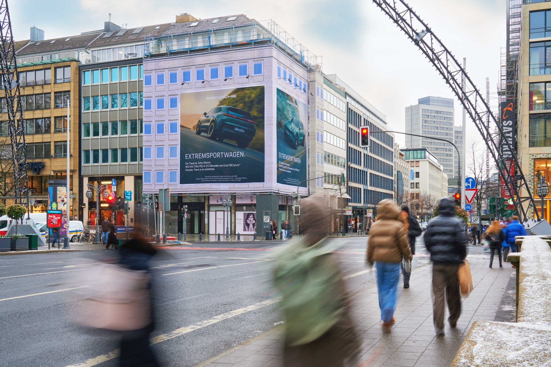 Premium location - this Giant Poster is located in the centre of Düsseldorf's famous Königsallee, the place to be for fashion-conscious for fashion-conscious shopping fans and trendsetters. More than 110,000 well-heeled Düsseldorfers and tourists pass through here every day. On the Kö, you can find high-quality brands such as Hermès, Chanel and Gucci in an exclusive environment. The Breuninger department stores' and the popular Schadowstraße shopping street are also within walking distance within walking distance. In the immediate vicinity: the renowned Breidenbacher Hof.