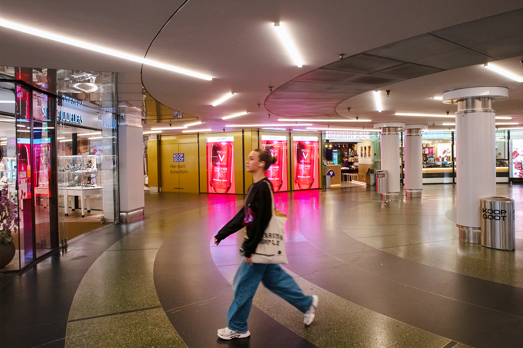 Van het winkelende publiek tot zakelijke bezoekers, van locals tot toeristen – de Koopgoot trekt dagelijks een gevarieerd en breed publiek. En met meer dan 80 winkels, restaurants en cafés in de buurt, plus het kantoor van Rotterdam World Trade tegenover, is dit dé plek om jouw merk te presenteren.