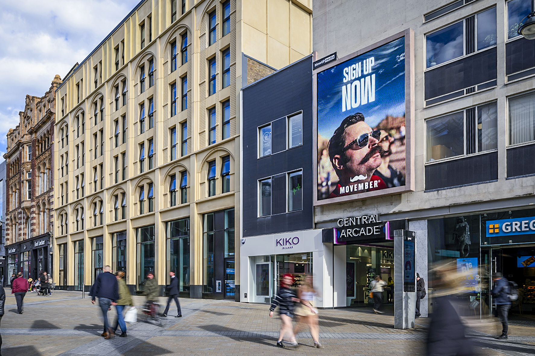 Leeds Super Motion is a fantastic addition to Briggate, a bustling street that cuts through the heart of the city, capturing the attention of shoppers, urban individuals and nightlife enthusiasts.