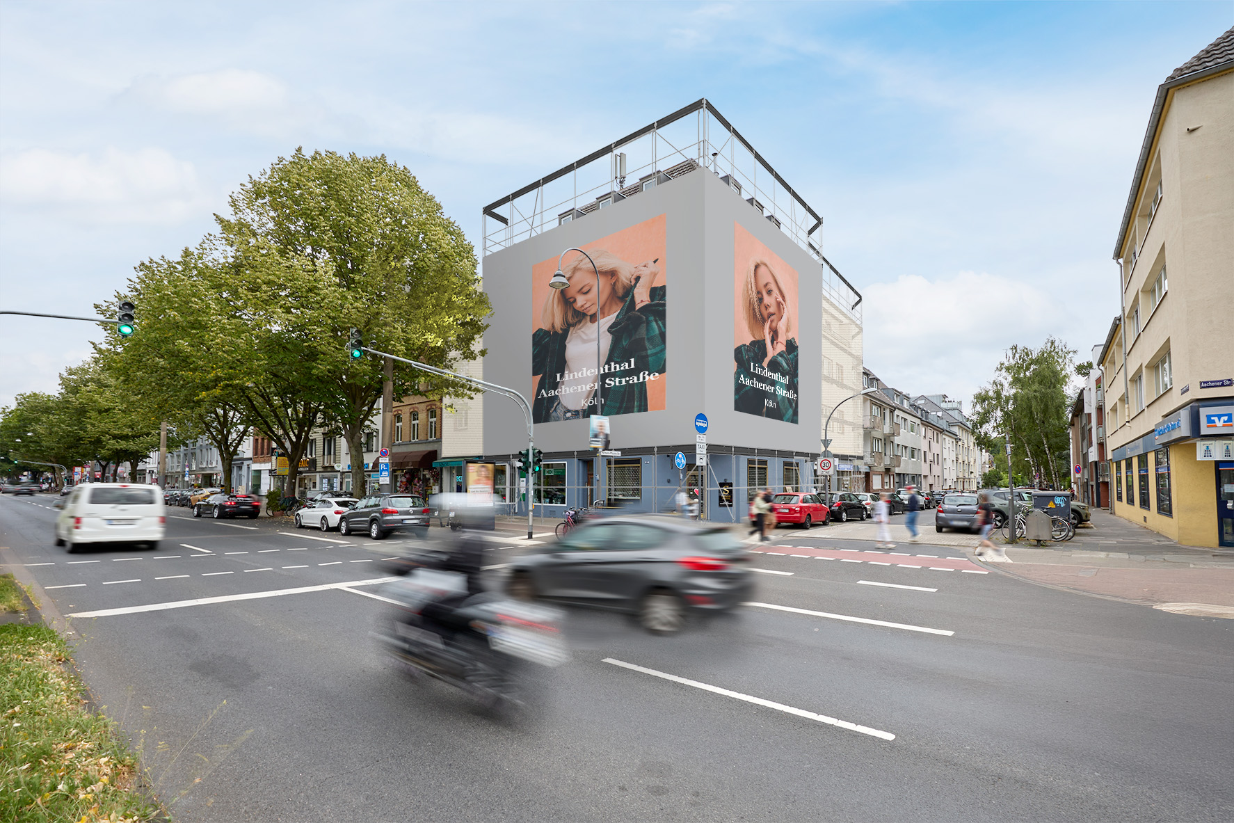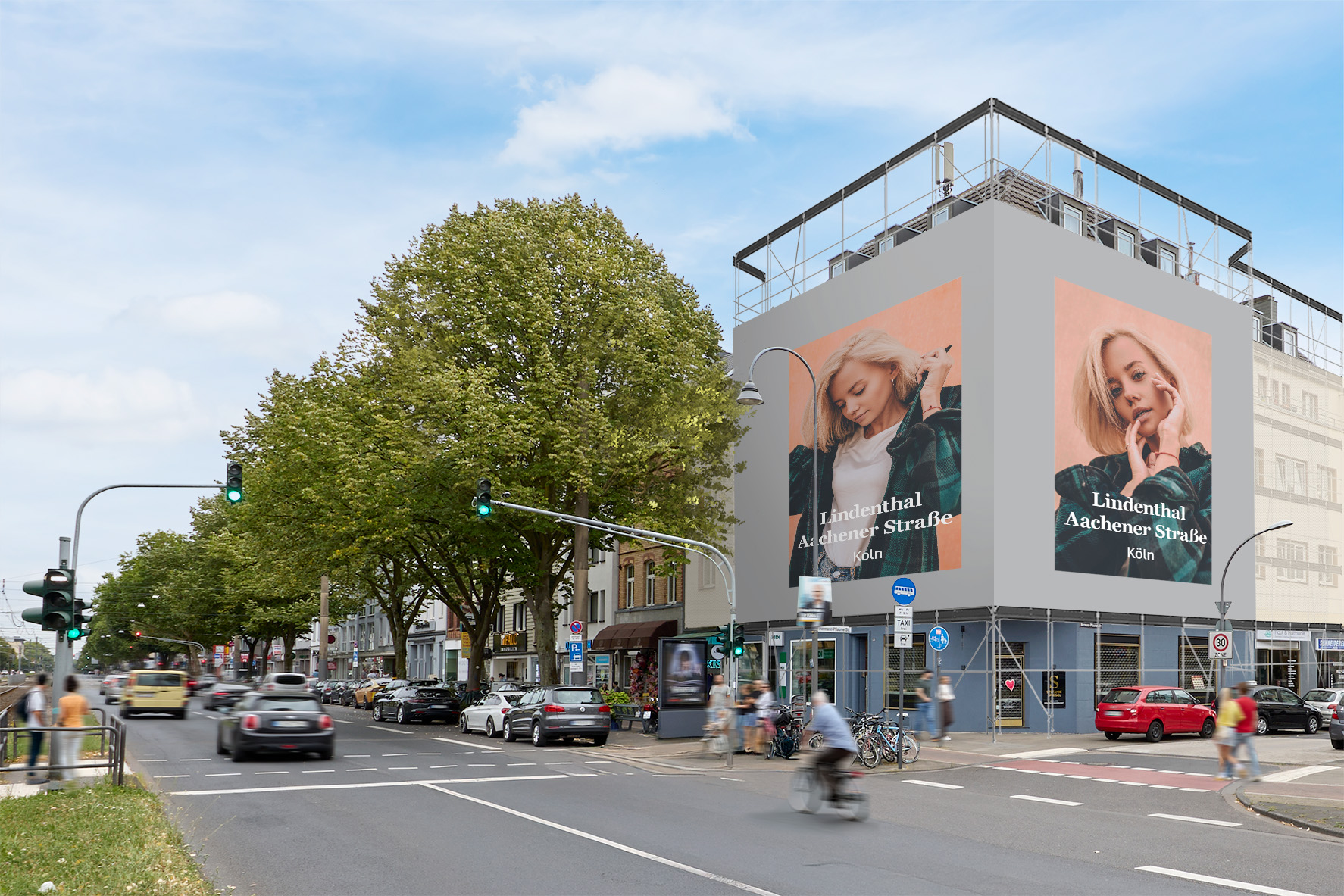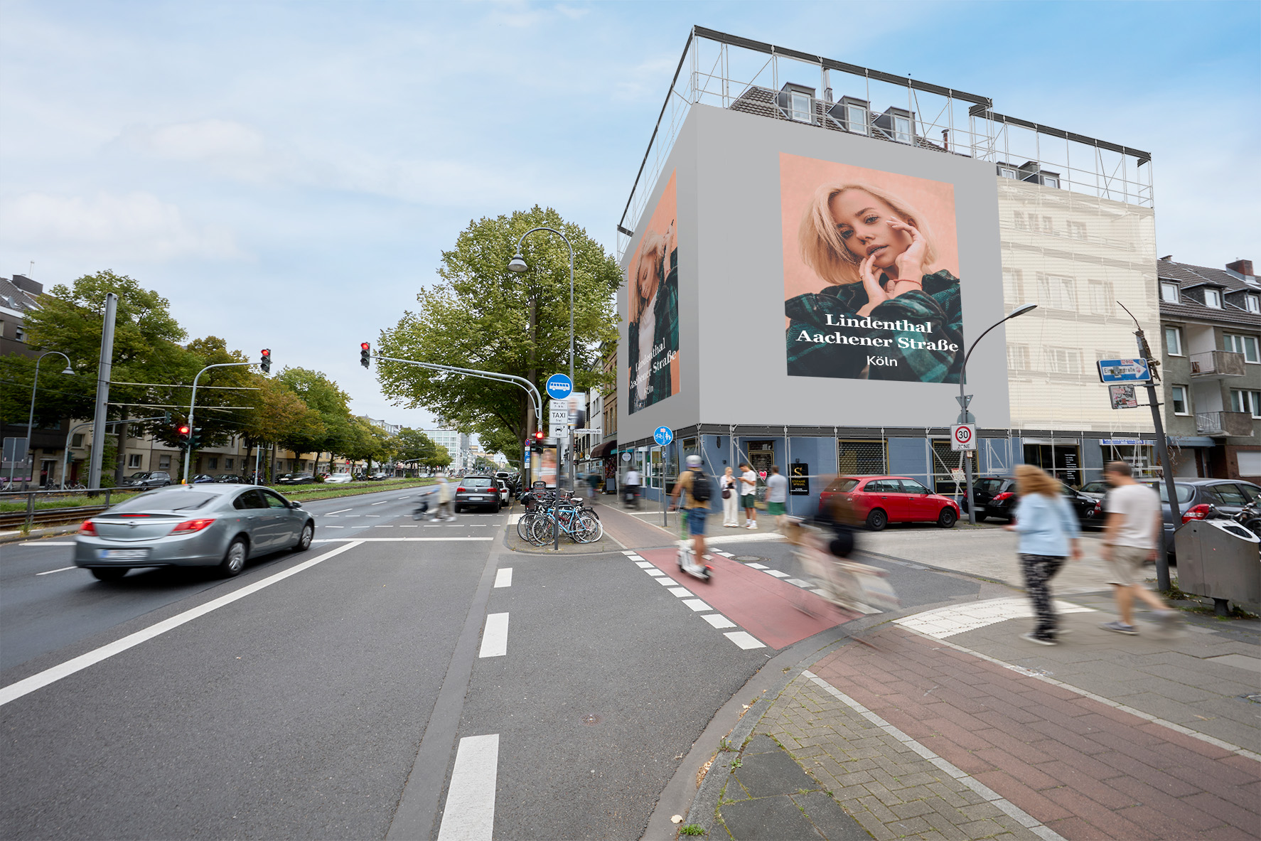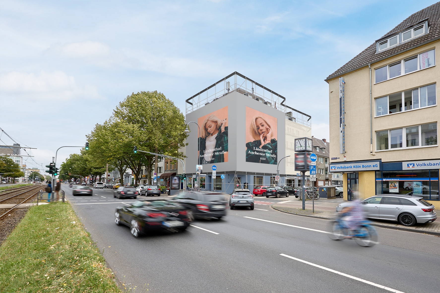 A traffic magnet on Aachener Straße! This Giant Poster is located on one of Cologne's main thoroughfares. Directly adjacent to the popular Ehrenfeld district, Aachener Straße connects the city center and the Cologne Ring Road and serves as the access road to the A1 and A4 motorways. On the way to the many cafés and bars in the city center and the nearby green spaces, there's no way around this Giant Poster.