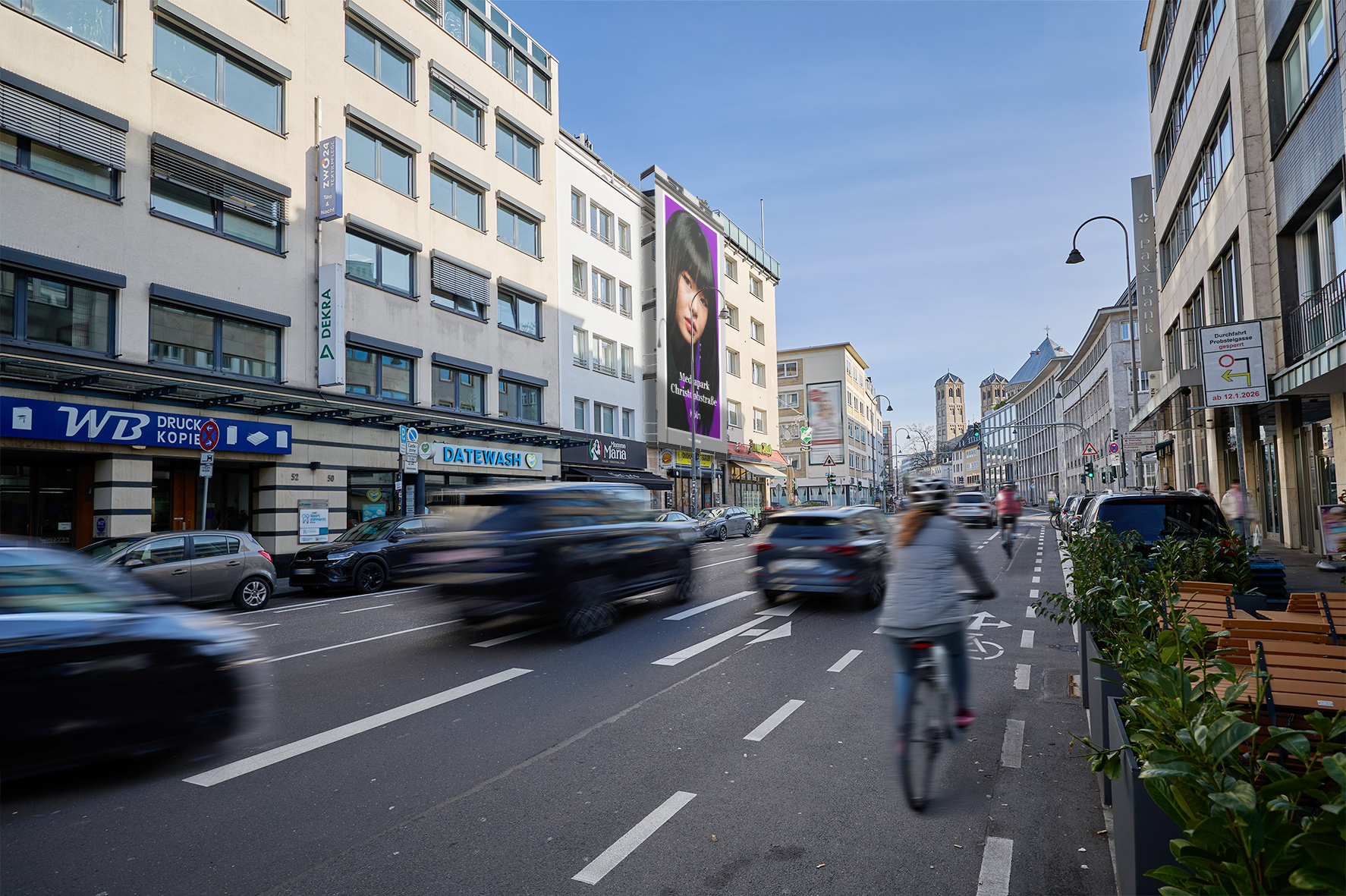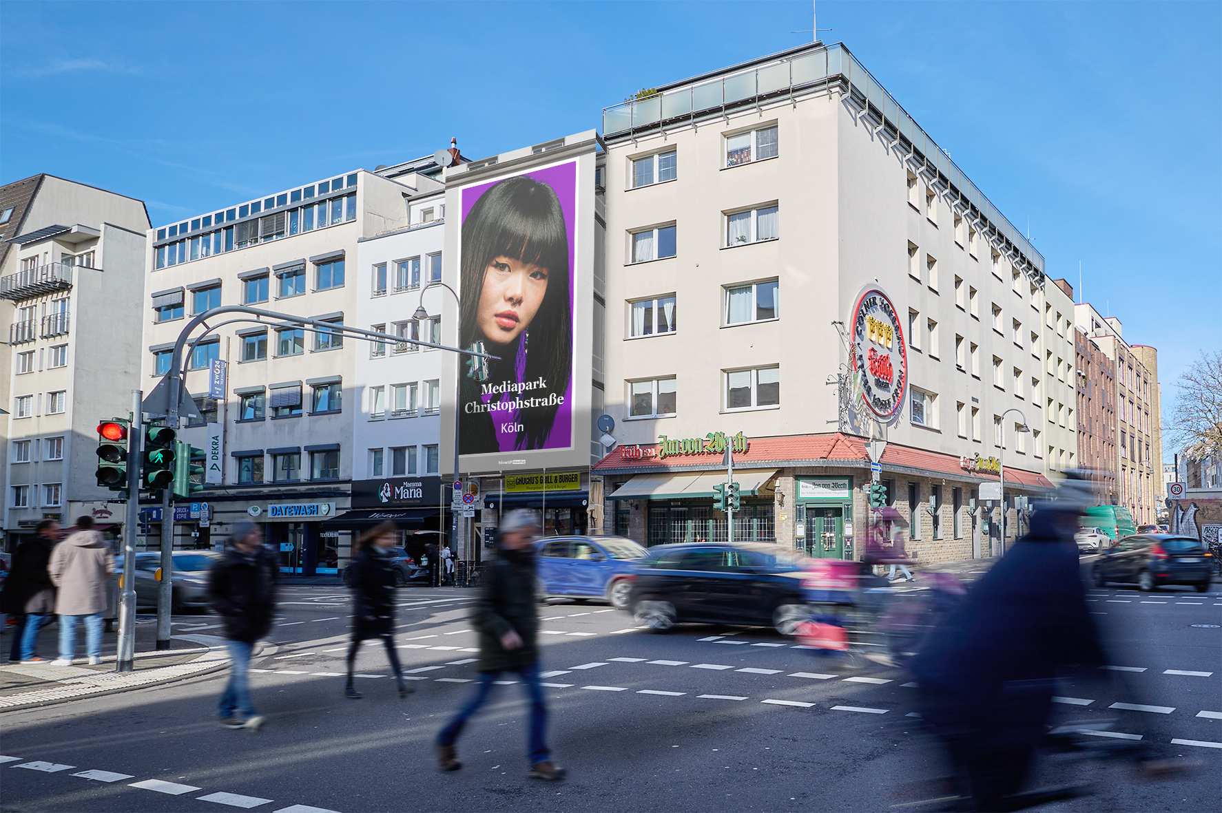 Urban impact in Cologne! Between the vibrant Cologne Ring roads, the MediaPark, and the city center, professionals, creatives, shoppers, and locals from the neighborhood meet daily. The nearby Christophstr./MediaPark stop ensures a constant flow from all directions: for a coffee break, on the way to the office, for a shopping trip on Schildergasse, or to the trendy bars, clubs, and restaurants along the Ring roads. Here, lifestyle, big-city vibes, and movement reign supreme.