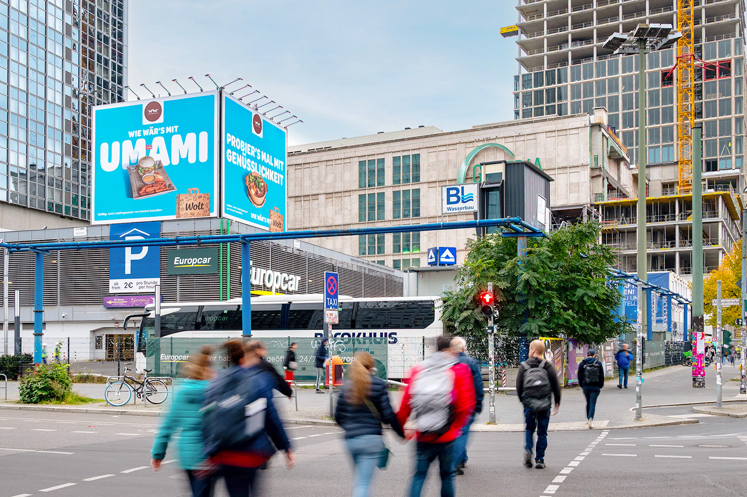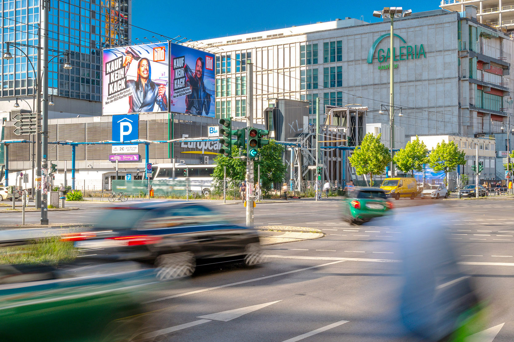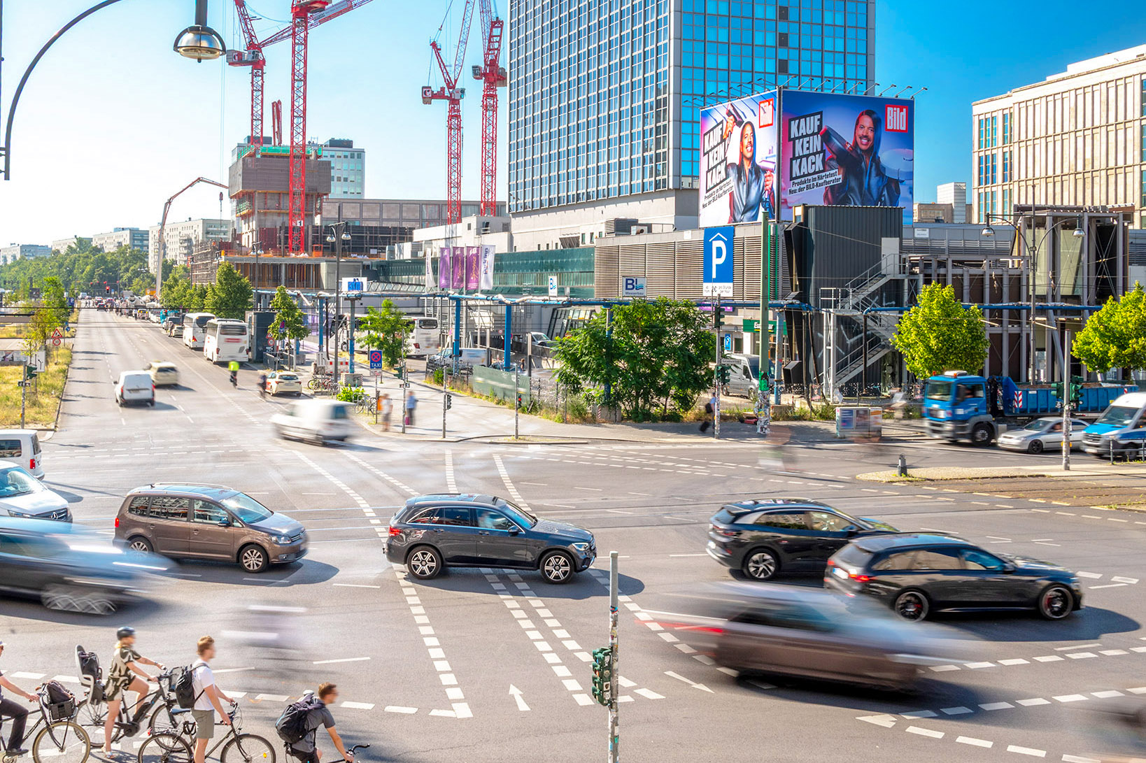 This eye-catcher consists of two Giant Posters lying across the corner and offers perfect visibility on Berlin's pulsating Alexanderplatz, the largest inner-city square in Germany and one of the liveliest squares in Berlin. Alexanderplatz attracts a diverse audience: a young party crowd in a shopping mood, business people, commuters and tourists.