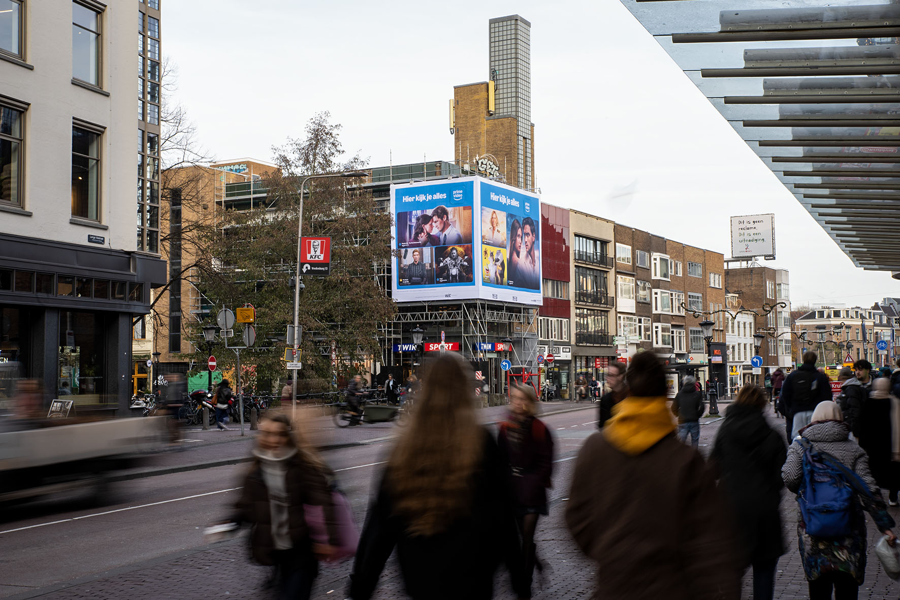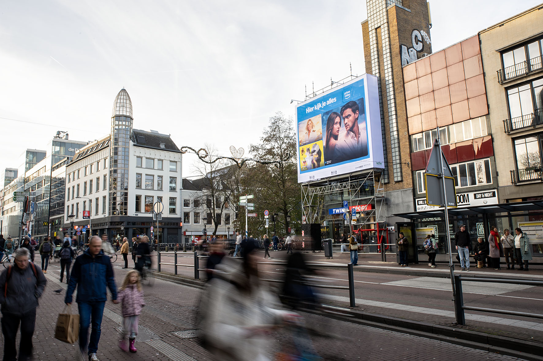 Dit is een formidabele hoeklocatie midden in het stadshart van Utrecht, onmisbaar voor voorbijgangers. De locatie ligt op de hoek van de bekende Oudegracht / Potterstraat. De Potterstraat is de verbindingsstraat tussen het Vredenburg en de gezellige Neude waardoor er dagelijkse vele bussen, fietsers en voetgangers de Giant Poster passeren. Utrecht Centraal Station en het vernieuwde Vredenburg bevinden zich om de hoek van deze locatie.