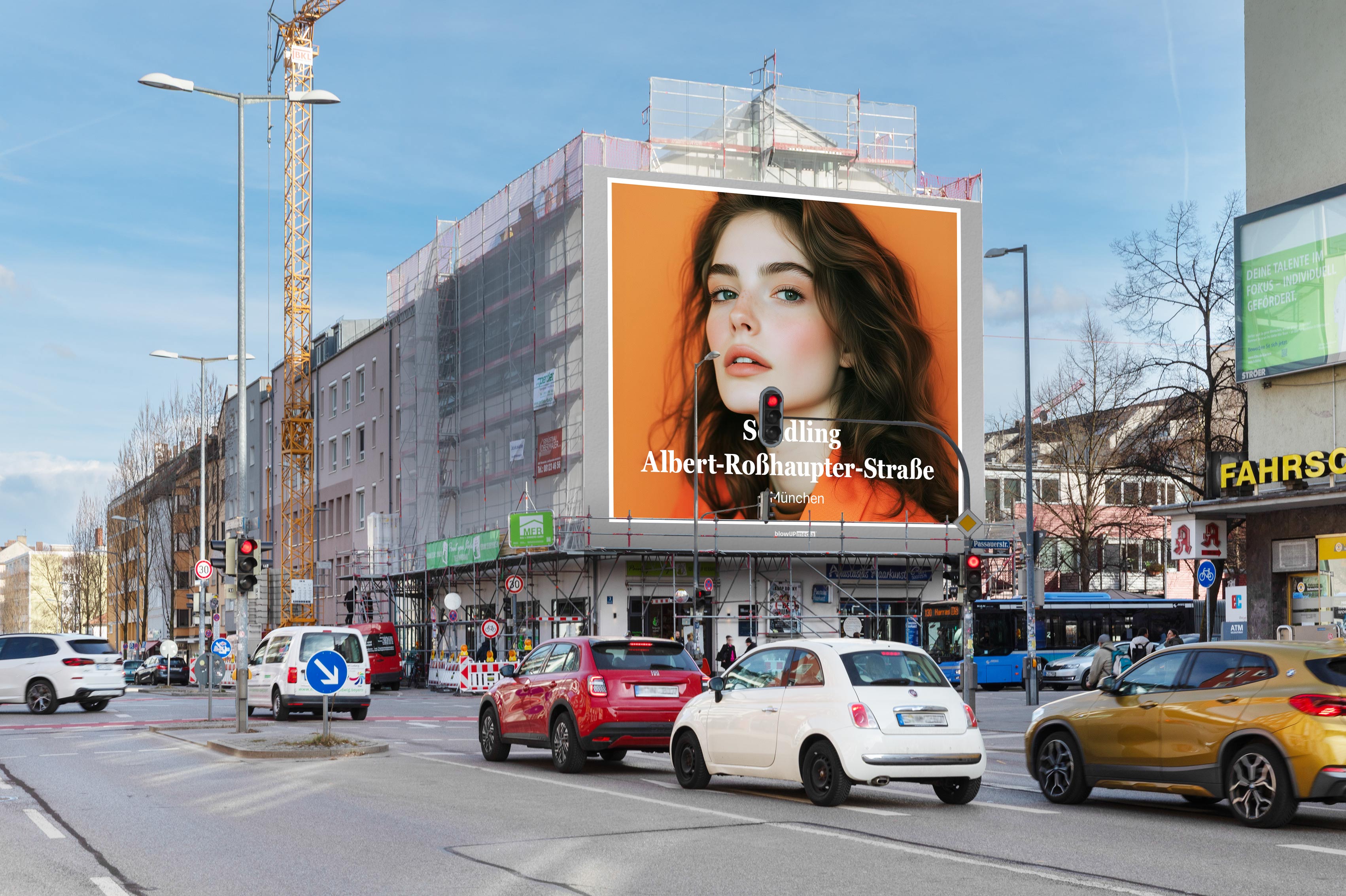 Maximum reach on 120 m²! Albert-Roßhaupter-Straße is one of the most important traffic arteries in the west of Munich, connecting several residential and commercial districts with the Mittlerer Ring road and the A95 motorway. As a result, the location benefits from consistently high daily traffic volumes from commuters and local residents. Just a few meters away is the central transport hub Harras, with commuter rail, metro and bus connections, attracting large numbers of visitors every day. Excellent transport links combined with close proximity to the city centre make this area one of the most important traffic corridors towards downtown Munich and the southern districts.