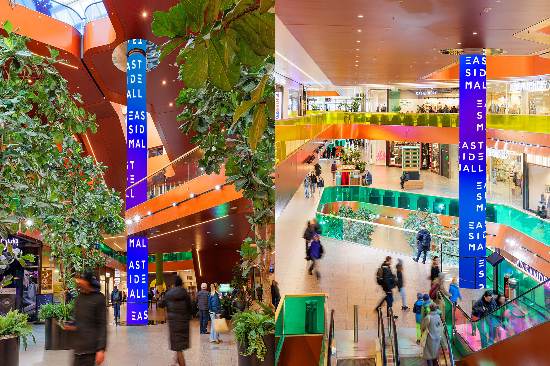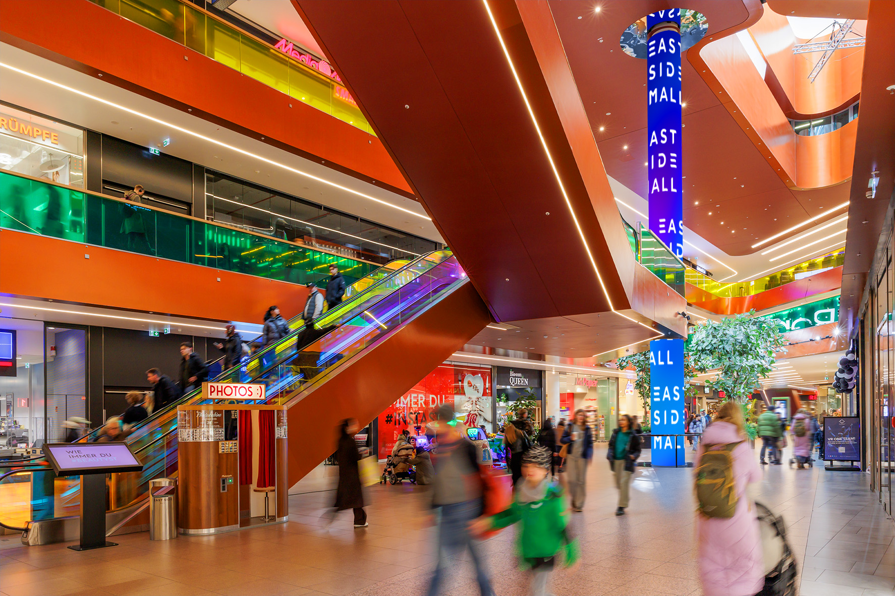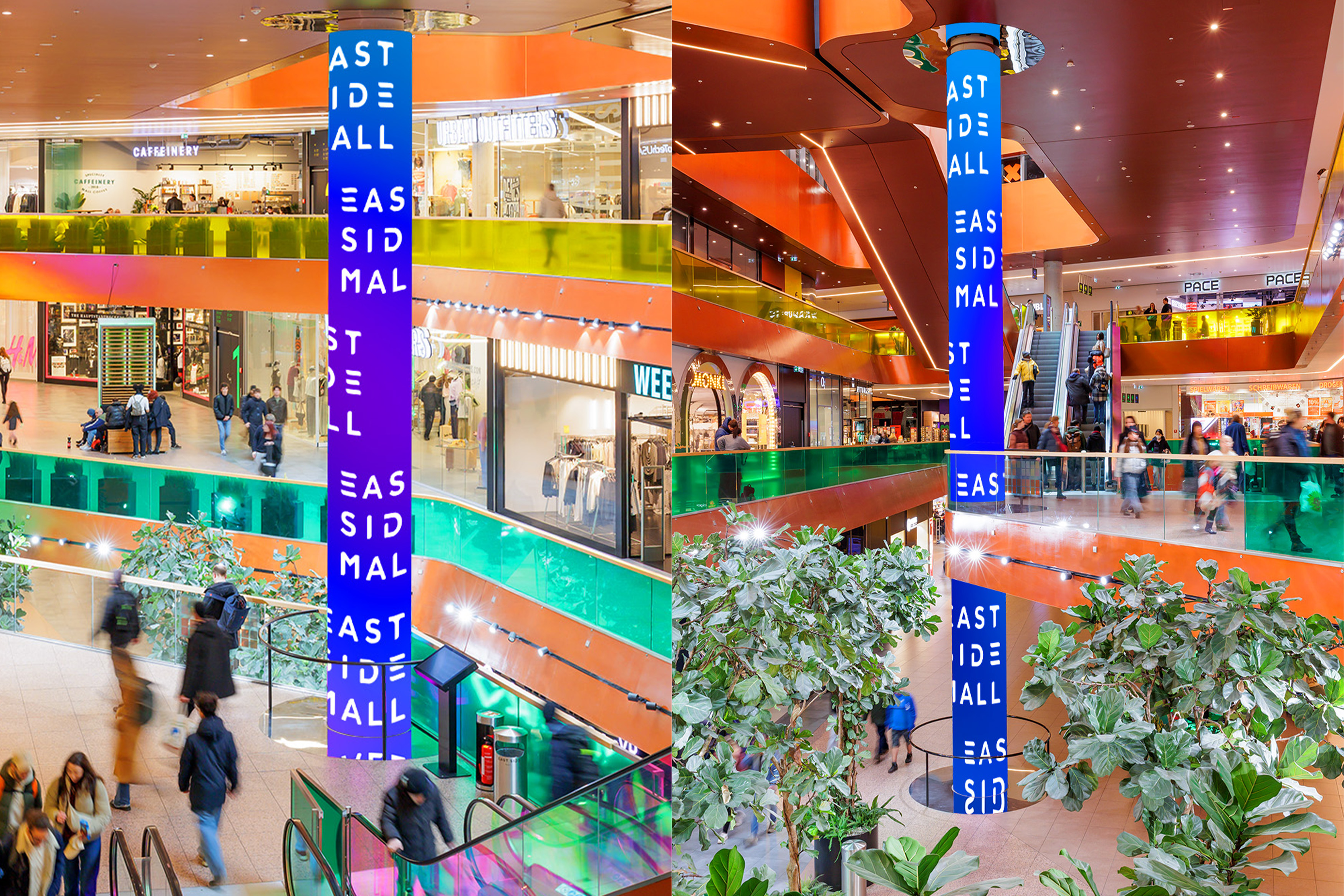 Unique lifestyle branding platform in the centre of the East Side Mall Berlin! At a height of 14 metres, the LED column lights up 360° on three levels right in the heart of the shopping centre. With over 100 shops on 3 floors and a sales area of approx. 25,000 m², the East Side Mall is one of the largest shopping hotspots in Berlin. In the immediate vicinity: Cultural highlights such as the East Side Gallery and the Uber Eats Music Hall, which make the area a destination for art and culture lovers.